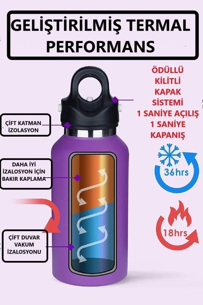 Revomax Double Walled Vacuum Insulated Water Bottle, Copper Plated, Insulated Thermos Flask, Twist-Free Cap, 18/8 Stainless Steel, BPA-free, Phthalate-free, No Flavour-Staining – Lilac Purple